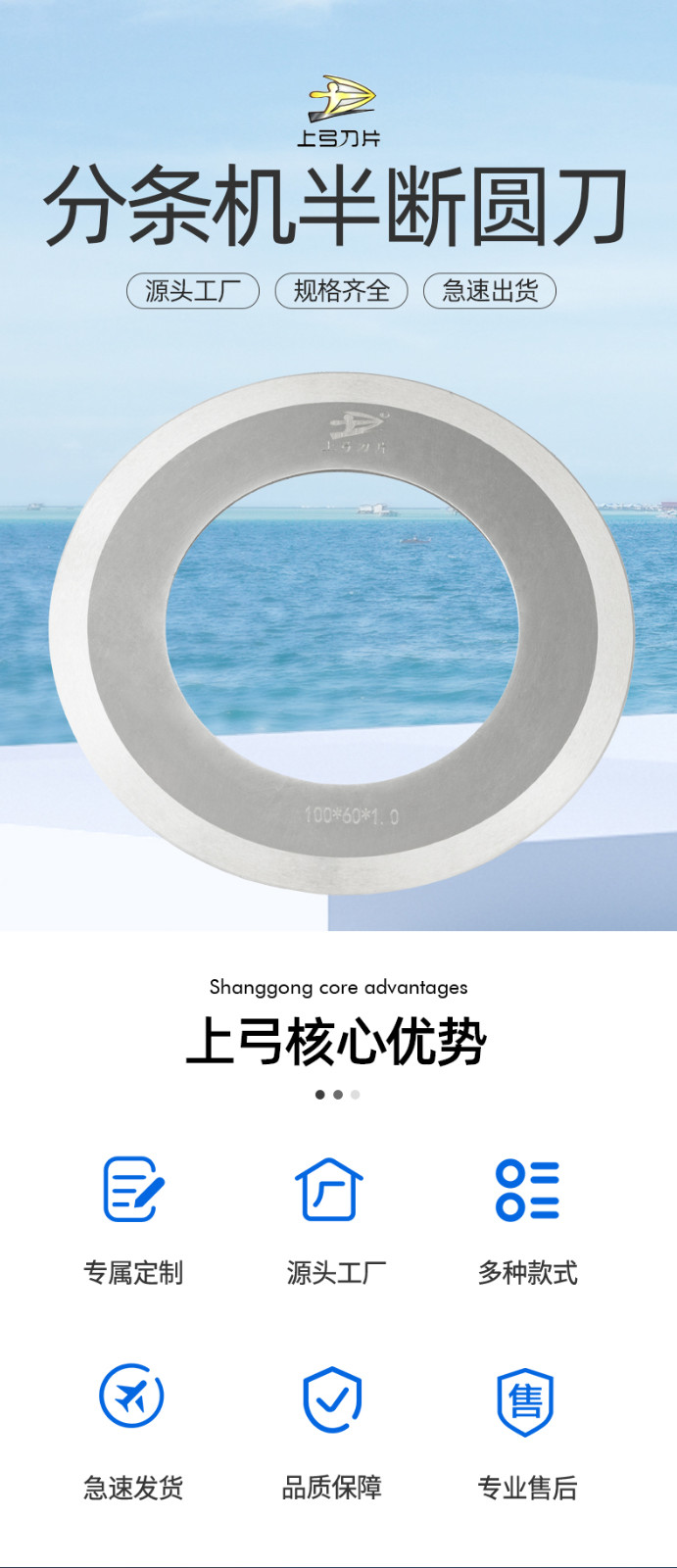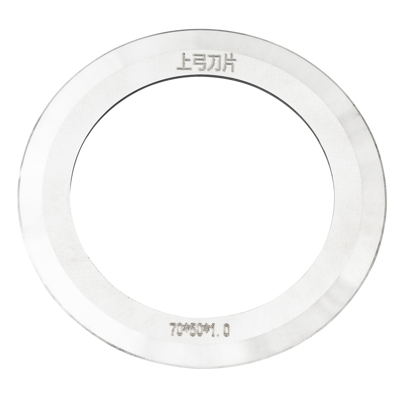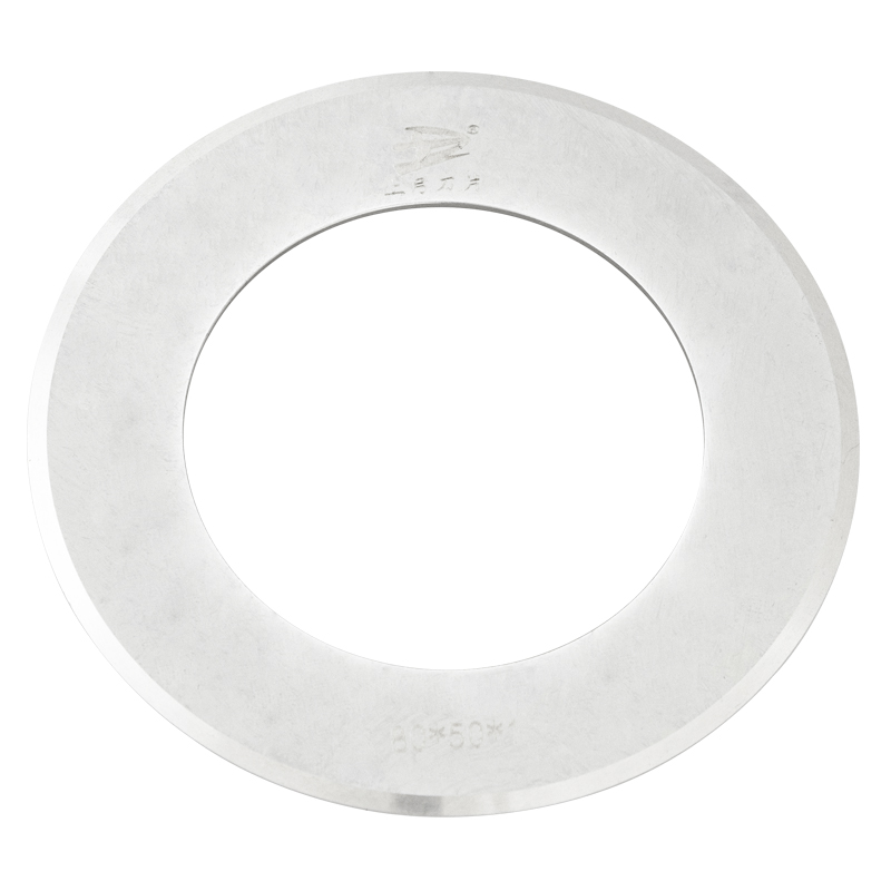 半斷分條機刀片屬于一種非常精密的刀具,外徑累計公差在正負(fù)0.02MM(人的頭發(fā)正常在0.08MM)主要是用于兩層材料在分切是底部一層不斷上層材料斷的分切加工,目前只有兩種材質(zhì),SKH-51和鎢鋼材質(zhì),鎢鋼材質(zhì)的缺點硬度高脆,調(diào)刀時容易碎口,故鎢鋼相較于SKH-51價格稍微低一點,但是高硬度又給它帶來了不錯的耐磨性。