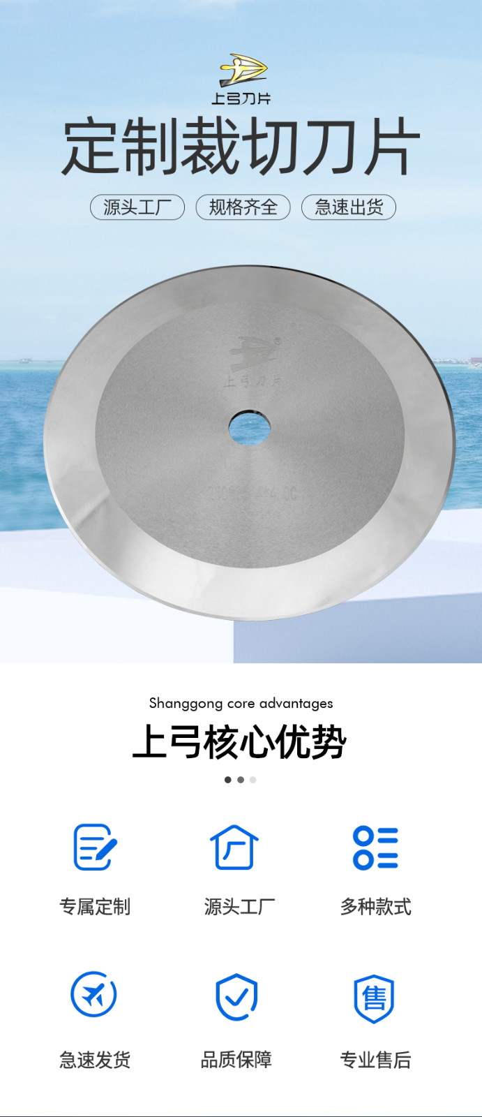 本公司生產(chǎn)的切卷機(jī)圓刀廣泛用于紙類、塑膠薄膜類、布類、發(fā)泡類泡棉、橡膠類的分切,經(jīng)過(guò)我們專業(yè)設(shè)備的磨削,產(chǎn)品有著外觀好,精度高,換刀頻次少,壽命長(zhǎng)的特點(diǎn)。