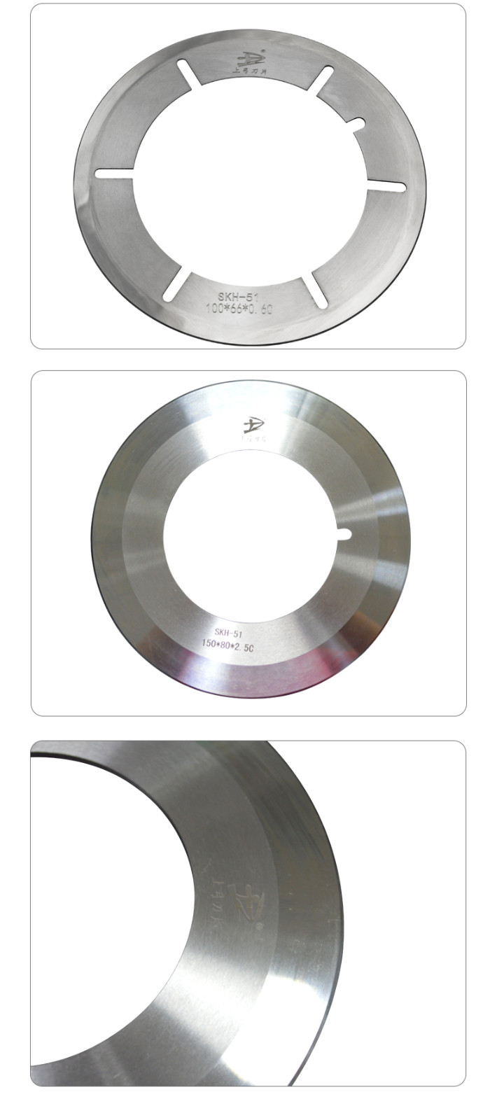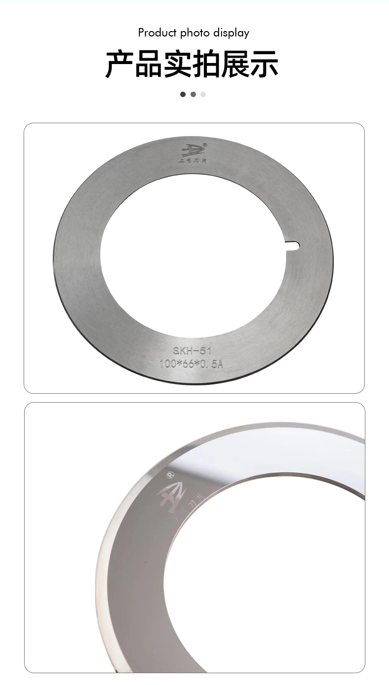 本公司生產(chǎn)的分條機上下刀廣泛用于紙類、塑膠薄膜類、布類、發(fā)泡類泡棉、橡膠類、金屬銅鋁箔、石墨烯材料的分切加工。此類產(chǎn)品經(jīng)過專業(yè)的設(shè)備磨削加工而成。產(chǎn)品具有外觀好,精度高,換刀頻次少,壽命長,具有極高的性價比。